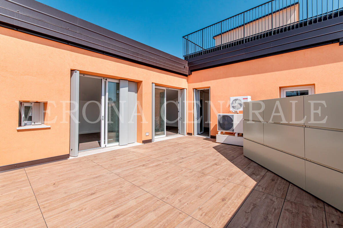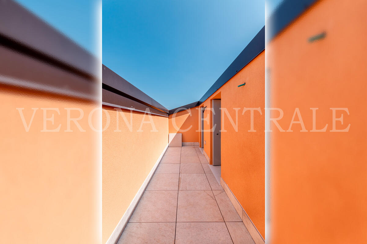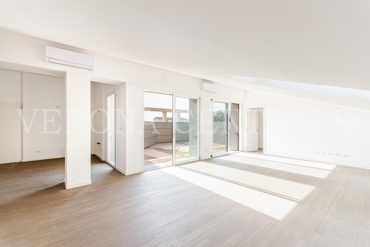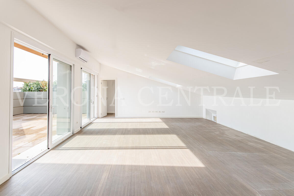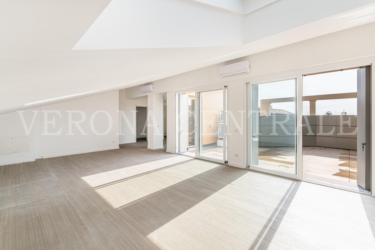 A pochi passi da Piazza Bra, all’ultimo piano di un elegante contesto di nuova realizzazione, proponiamo in locazione uno splendido attico che fonde design moderno e una vista mozzafiato sulla città. L'abitazione si distingue per i suoi eccezionali spazi esterni, a partire dalla zona giorno luminosa che si apre su una prima terrazza di 30 mq attraverso ampie vetrate, creando un ambiente unico tra interno ed esterno.