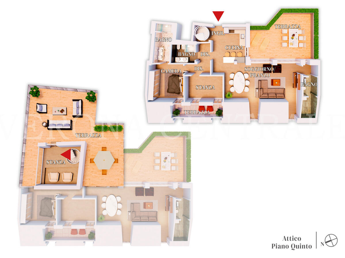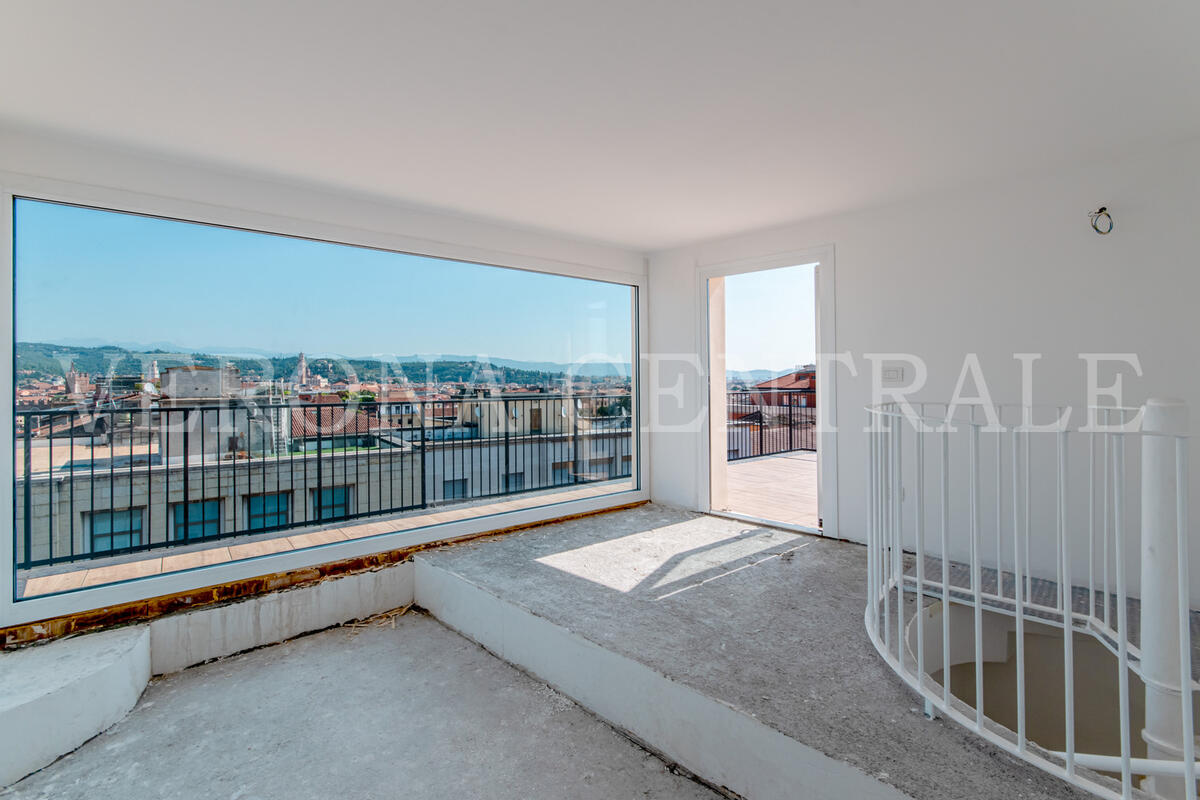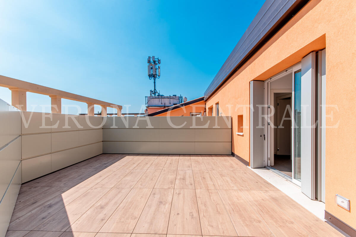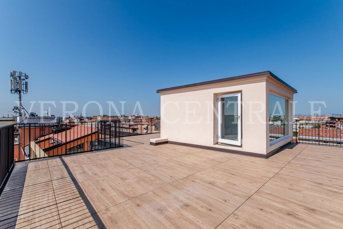 A pochi passi da Piazza Bra, all’ultimo piano di un elegante contesto di nuova realizzazione, proponiamo in locazione uno splendido attico che fonde design moderno e una vista mozzafiato sulla città. L'abitazione si distingue per i suoi eccezionali spazi esterni, a partire dalla zona giorno luminosa che si apre su una prima terrazza di 30 mq attraverso ampie vetrate, creando un ambiente unico tra interno ed esterno.
