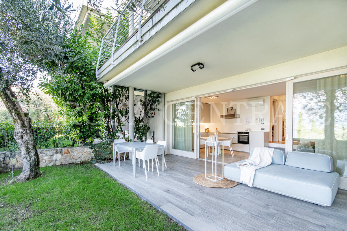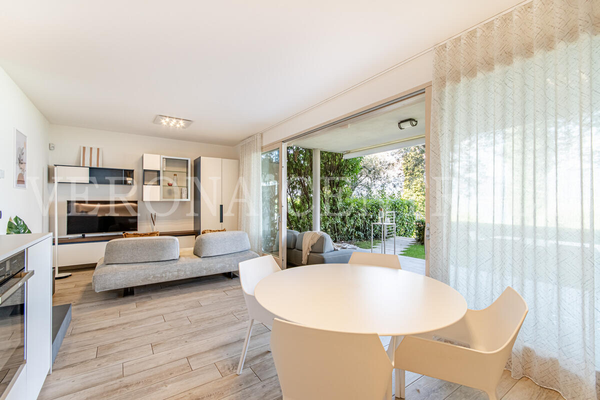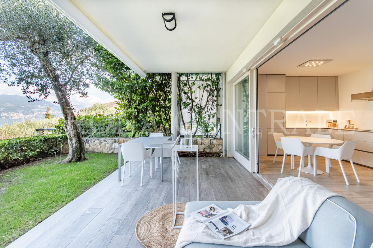 Nel cuore della splendida località di Pai, a pochi passi dalle rive del Lago di Garda, proponiamo in vendita una raffinata soluzione indipendente al piano terra, inserita in un elegante contesto residenziale con piscina e giardino condominiale.